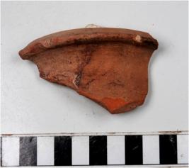 | Description / विवरण | A fragment of a vase of red ware with out turned rim, concave neck of fine fabric well levigated. |