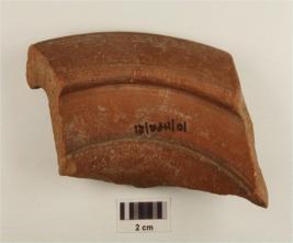 | Description / विवरण | A fragment vase of red ware, out turned beaked rim, concave neck, incised semi-circular line in side, of medium fabric and treated with red slip. |