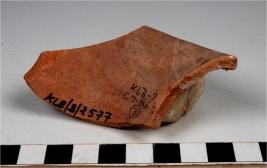 | Description / विवरण | A fragment of a vase of red ware with out turned rim, oblique sides of fine fabric. |