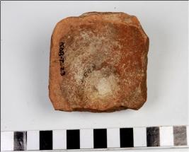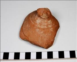 | Description / विवरण | A fragment of a lid of red ware with a broken disc knob, of medium fabric. |