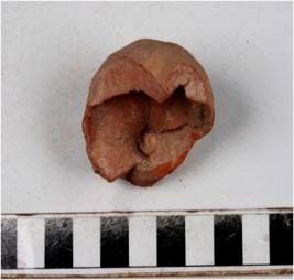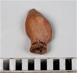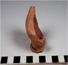 | Description / विवरण | A fragment of a miniature lower of pot of red ware with broken button base of medium fabric. |