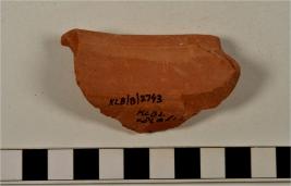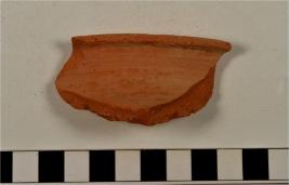 | Description / विवरण | A fragment of a vase of red ware with out turned rim, concave neck oblique sides of fine fabric. |