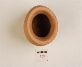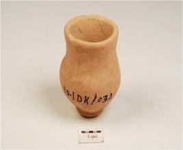 | Description / विवरण | A miniature vase of dull red ware, vertical rim, globular body, concave neck and foot base. |