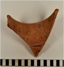 | Description / विवरण | A fragment of a vase of red ware with nail headed rim, vertical neck, oblique sides of fine fabric. |