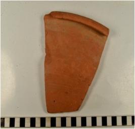 | Description / विवरण | A fragment of a basin of red ware with flanged rim, tapering sides of fine fabric. |