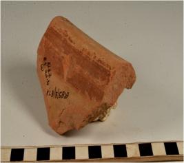| Description / विवरण | A fragment of a storage jar of slipped red ware with flanged rim, concave neck of thick fabric, fine texture. |