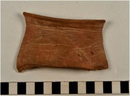 | Description / विवरण | A fragment of a vase of red ware with out turned rim, oblique sides of medium fabric. |
