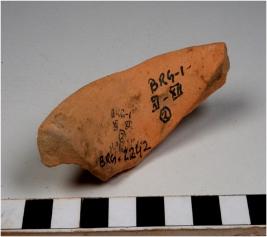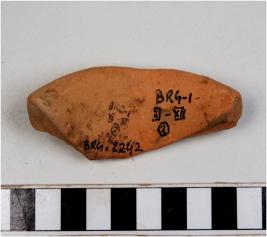 | Description / विवरण | A fragment of a vase of red ware with externally thickened rim, straight sides of medium fabric. |