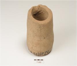| Description / विवरण | A miniature beaker of a dull red ware, cylindrical body with a flat base. |