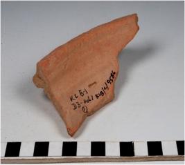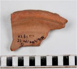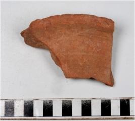 | Description / विवरण | A fragment of a base of dish on stand of red ware with flaring profile of fine fabric. |
