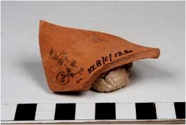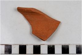 | Description / विवरण | A fragment of a vase of red ware with flaring rim, concave neck, sides of fine fabric. |
