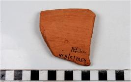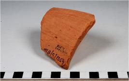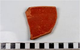 | Description / विवरण | A base fragment of a dish on stand of polished red ware sloping profile of out turned rim, medium fabric, fine texture. |