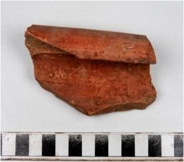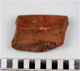 | Description / विवरण | A fragment of a jar of slipped red ware with flanged rim, concave neck of thick fabric well levigated. |