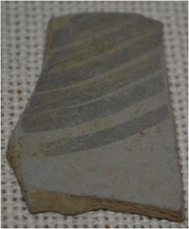 It is a fragment of PGW pottery with black painting on it. It is a fragment of the body part of pottery.