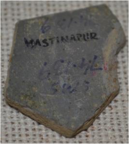 It is a fragment of PGW pottery with black painting on it. It is a fragment of the body part of pottery.