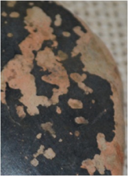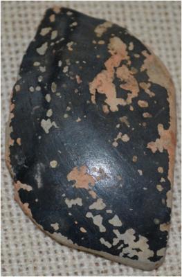 It is a fragment of N.B.P.W. Pottery. it is a fragment of the body part of pottery. The black polished surface of potsherd is eroded.