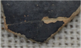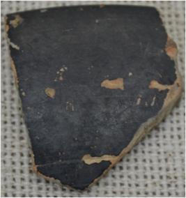 It is a fragment of N.B.P.W. Pottery. it is a fragment of the body part of pottery. The black polished surface of potsherd is eroded.