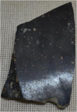 It is a fragment of N.B.P.W. Pottery. it is a fragment of the body part of pottery.