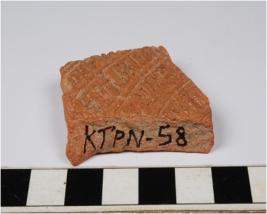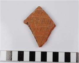 | Description / विवरण | A potsherd of a red ware having incised vertical lines on surface of medium fabric. |