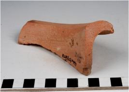 | Description / विवरण | A fragment of a vase of red ware with flanged rim, concave neck, oblique sides of fine fabric. |