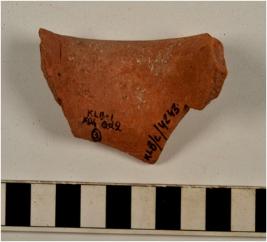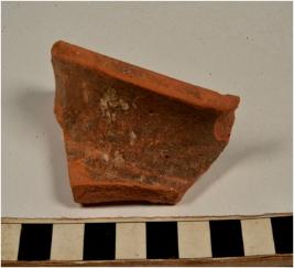 | Description / विवरण | A fragment of a vase of red ware with flaring rim, concave neck of fine fabric, well levigated. |