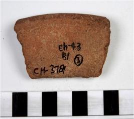 | Description / विवरण | A fragment of a vase of red ware with slightly out turned thickened rim and straight sides ill fired. |