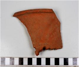 | Description / विवरण | A fragment of a perforated jar of red ware with out curved rim, vertical neck, straight sides of medium fabric well levigated. |