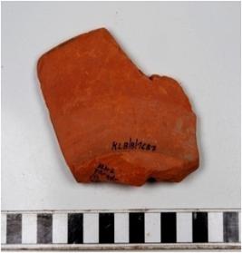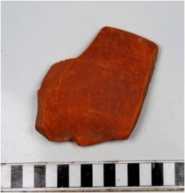 | Description / विवरण | A fragment of a rim of slipped dark red ware with flaring rim of fine fabric well levigated. |