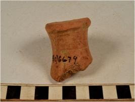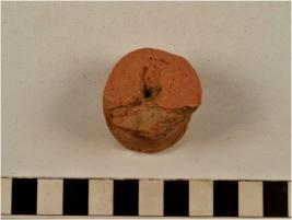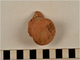 | Description / विवरण | A fragment of a knob of red ware with flat discular base of thick fabric. |