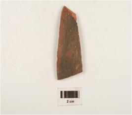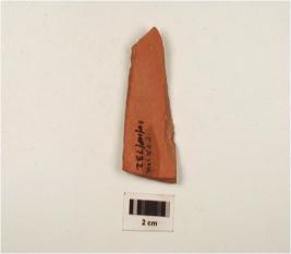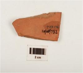 | Description / विवरण | Fragment of vessel of black on red ware decorated with leaf motif in black pigment fine fabric and well baked. |