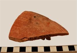 | Description / विवरण | A fragment of a dish of slipped red ware with splayed out rim of fine fabric well levigated. |