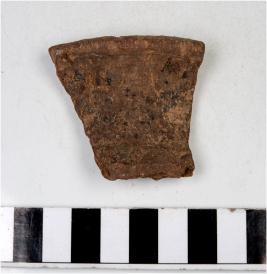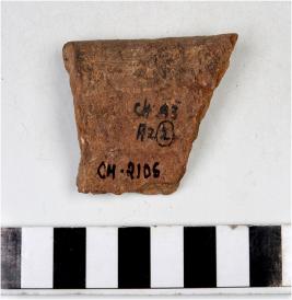 | Description / विवरण | A fragment of a vase of red ware with externally out turned rim, concave neck and tapering sides. |