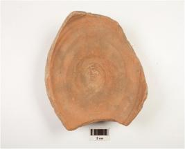 | Description / विवरण | Fragment of vase of red ware with disc base, fine fabric and well baked. |