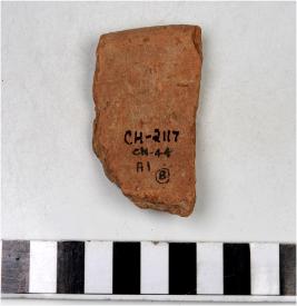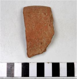 | Description / विवरण | A fragment of a dish of dull red ware with incurved rim and straight sides. |
