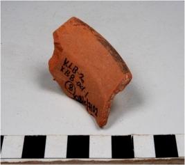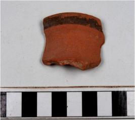 | Description / विवरण | A fragment of a vase of red ware with out turned rim having a black horizontal rim band, concave neck, oblique sides of medium fabric. |