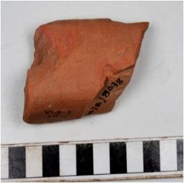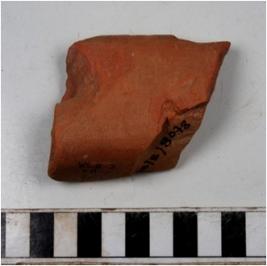 | Description / विवरण | A fragment of a rim of red ware with out turned rim, having black horizontal rim band oblique sides of fine fabric. |