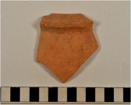 | Description / विवरण | A fragment of a bowl of red ware with slightly incurved rim, having ridge tapering sides of fine fabric. |