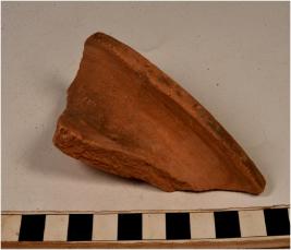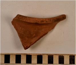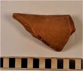 | Description / विवरण | A fragment of a vase of red ware with out turned rim, concave neck, oblique sides of fine fabric. |