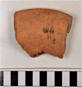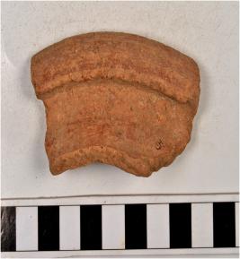 | Description / विवरण | A fragment of a vase of red ware with collared rim, vertical neck, oblique sides, treated with red slip of coarse fabric. |