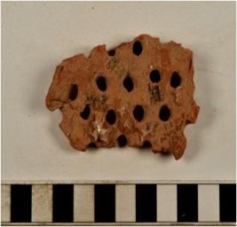 | Description / विवरण | A fragment of a perforated jar of red ware of fine fabric. |