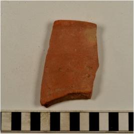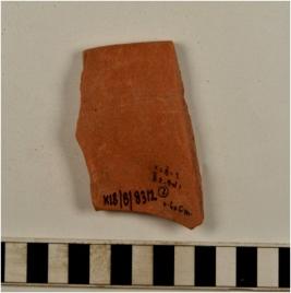 | Description / विवरण | A fragment of a bowl of red ware with featureless rim, straight sides of medium fabric. |