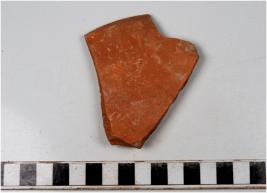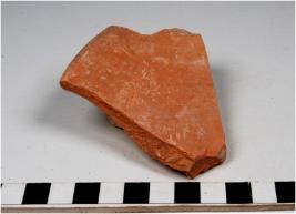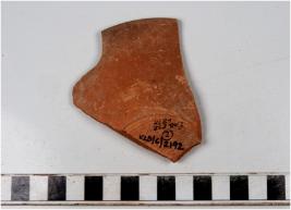 | Description / विवरण | A fragment of a bowl of red ware with slightly out turned rim, tapering sides, disc base of fine fabric and ill fired. |