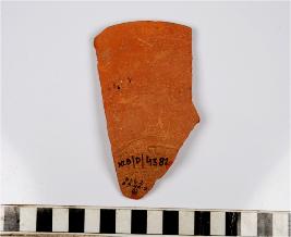 | Description / विवरण | A fragment of a bowl of red ware with flared rim, tapering sides, discular base of medium fabric. |