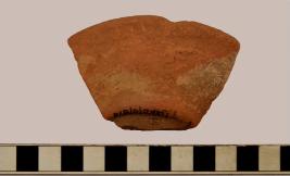 | Description / विवरण | A fragment of a bowl of red ware with featureless rim, tapering sides ring base of medium fabric. |