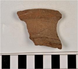 | Description / विवरण | A fragment of a vase of red ware with out turned rim, concave neck and tapering sides, medium fabric. |