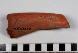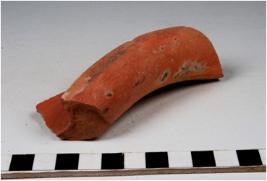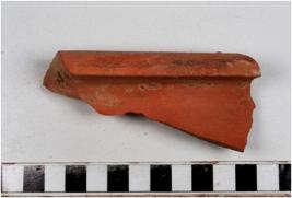 | Description / विवरण | A fragment of a vase of slipped red ware with flanged rim, concave neck, oblique sides of thick fabric well levigated. |