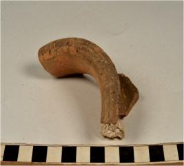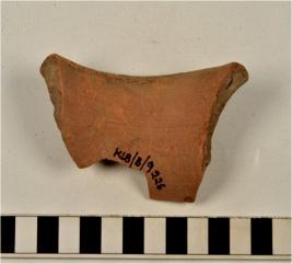 | Description / विवरण | A fragment of a vase of red ware with out turned rim, concave neck, oblique sides of fine fabric and ill fired. |