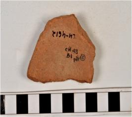 | Description / विवरण | A fragment of a base of red ware with broken discular base and medium fabric. |