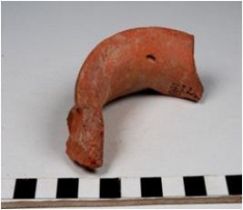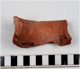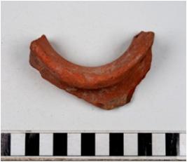 | Description / विवरण | A fragment of a vase of red ware with out turned rim, concave neck, oblique sides, painted with black showing horizontal bands on exterior of fine fabric. |
