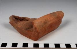 | Description / विवरण | A fragment of a jar of slipped red ware with flanged rim, concave neck straight sides of thick fabric well levigated. |